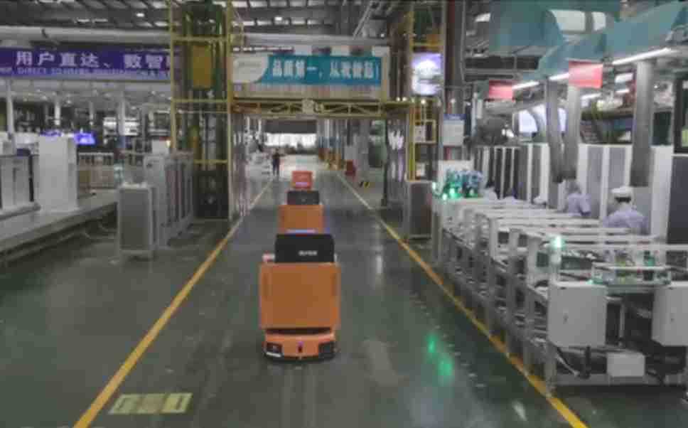 为车载冰箱物流配送打造的智能解决方案,,,包含产中物流通过潜伏举升AMR搬运至线边,,产后成品物流智能仓储,,流程包含产中物流智能齐套入库,,,,线边安灯叫料AMR智能配送至线边,,,,成品入库、、、、出库,,,通过无人堆高车机器人,,,,智能仓储管理替代人工作业管理,,,,实现更高存储、、、、更高效率、、、、更具柔性化的解决方案。。。。